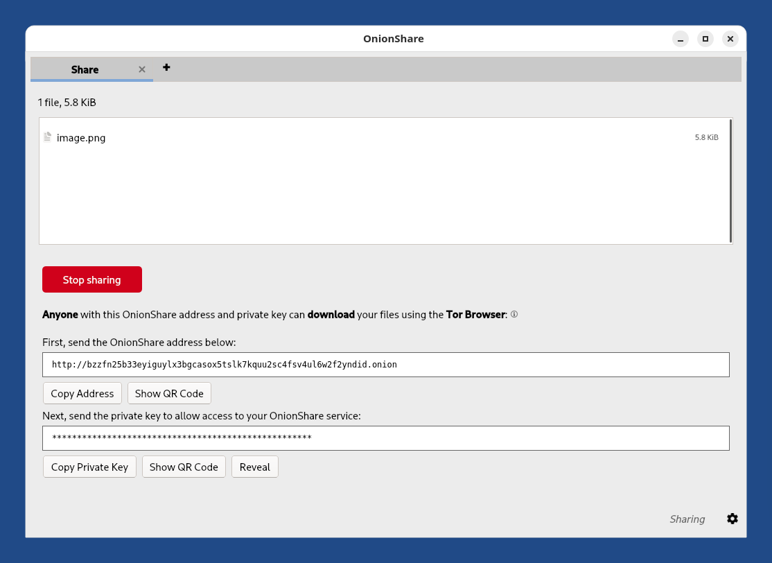 Unlike most Internet services, people using your OnionShare services connect directly to your Tails over the Tor network. Your data is never shared with or stored on any third-party server. Your Tails becomes a temporary and anonymous server.