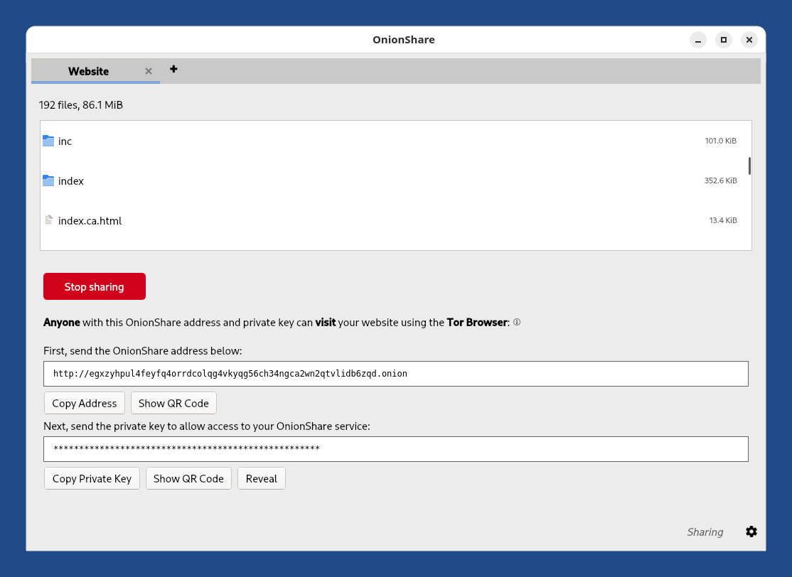 People with the onion address can download these files from their Tor Browser.