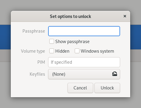Per desbloquejar un volum VeraCrypt, potser necessiteu els paràmetres següents, depenent de les opcions que es van seleccionar en el moment en que es va crear el volum: